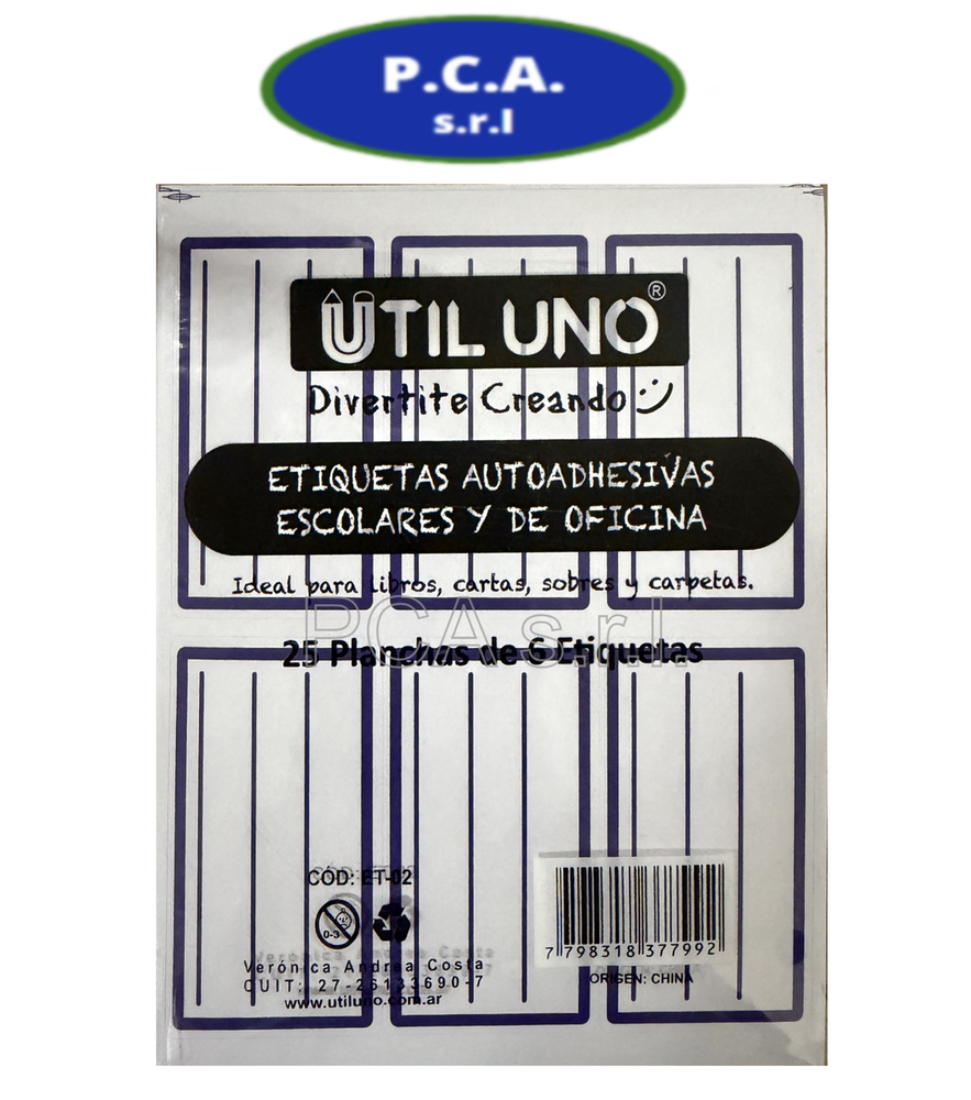 ETIQUETA ESCOLAR UTIL UNO 25 PLANC.X 6