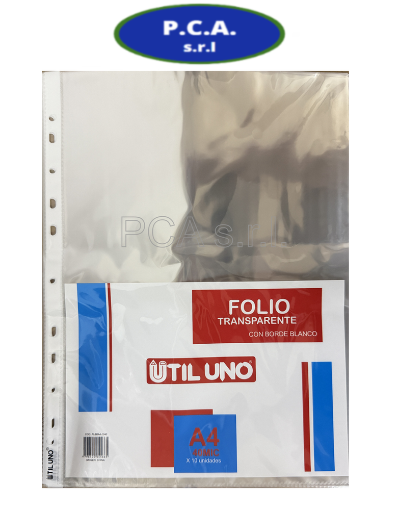 FOLIO A4 40 MIC.C/BORDE BCO X 10 UNID